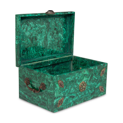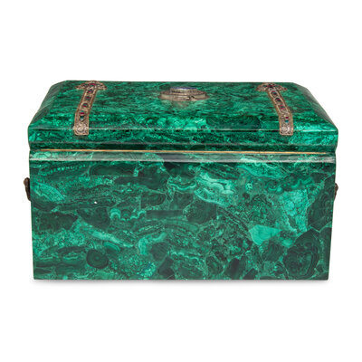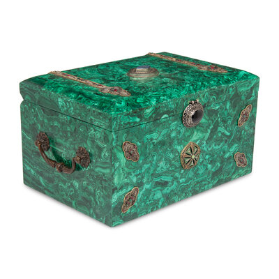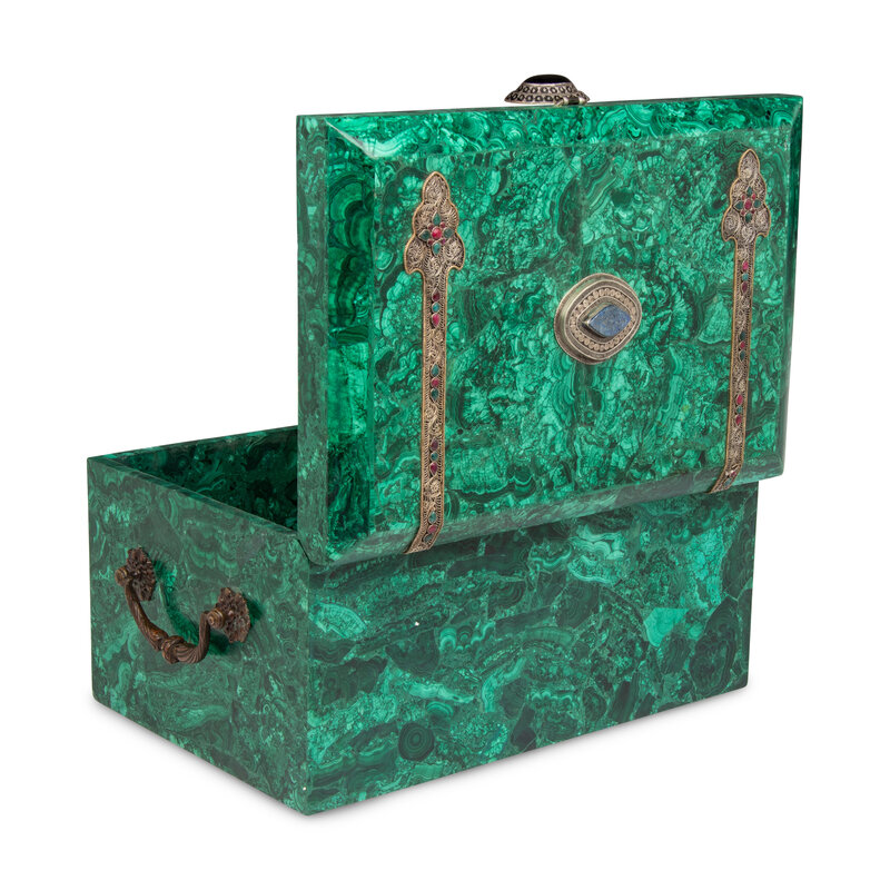 A Large Filigree, Ruby and Emerald-Mounted Malachite Box