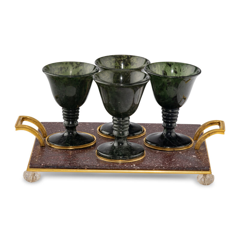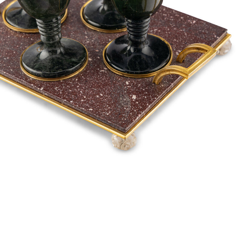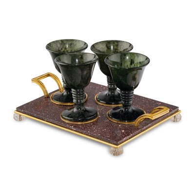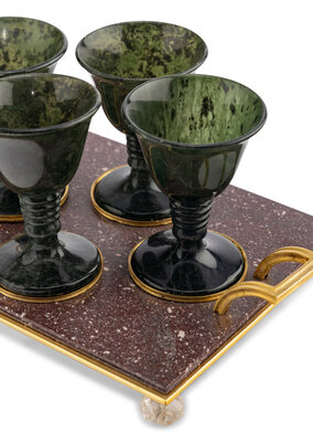 A Gilt Bronze Mounted Porphyry and Spinach Jade Cordial Set