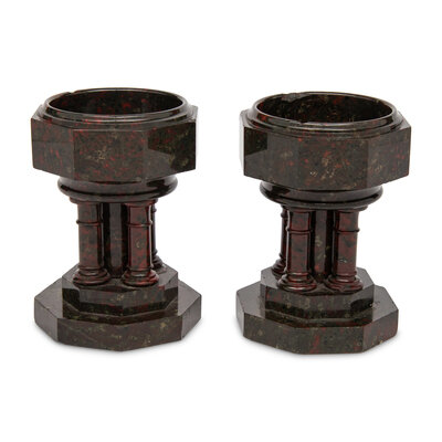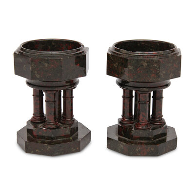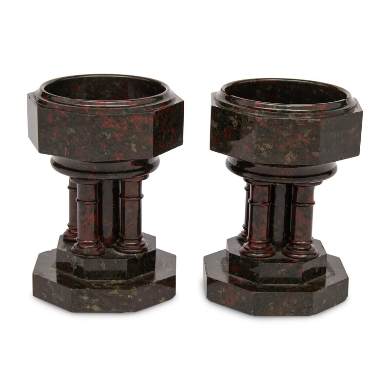 A Pair of Continental Carved Marble Footed Bowls