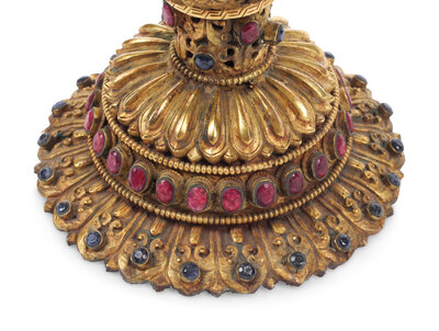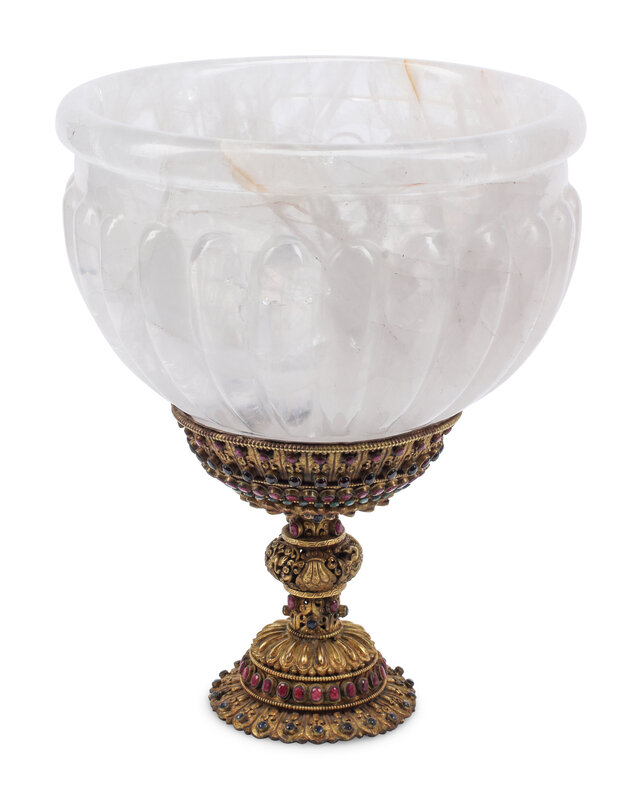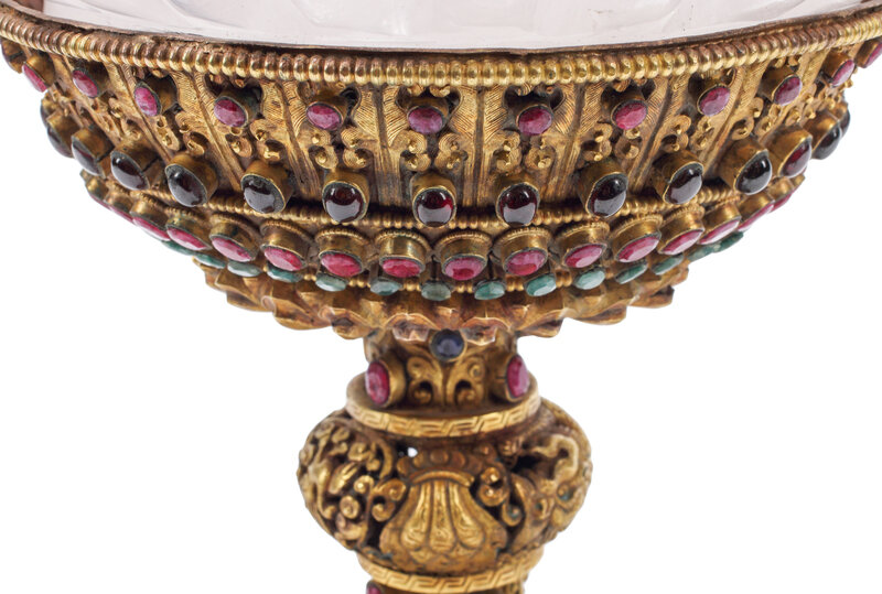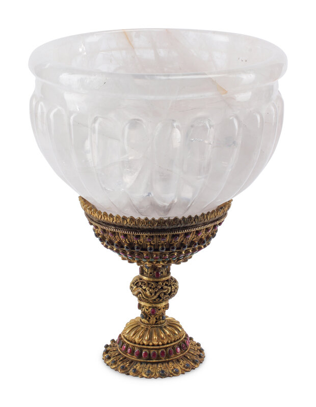 A Large Rock Crystal Bowl on a Jeweled Gilt Metal Base