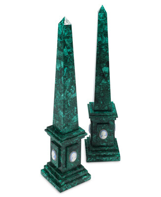 A Pair of Large Malachite Obelisks