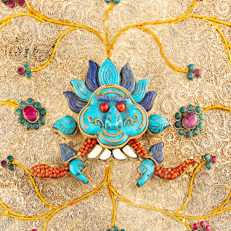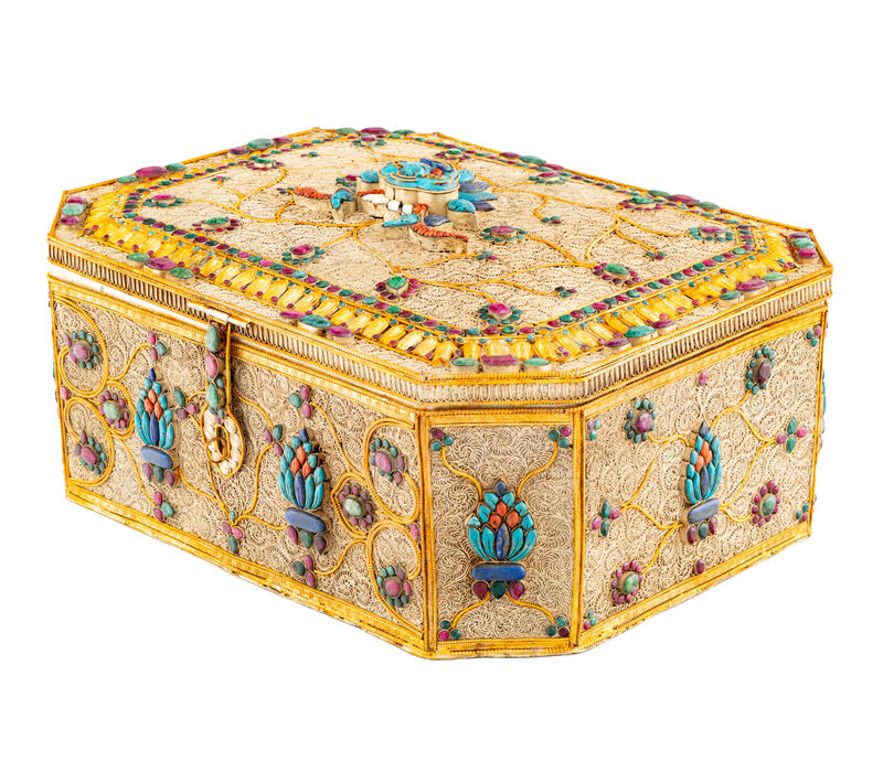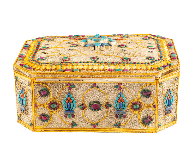 A Large Silvered and Gilt Filigree and Jeweled Box
