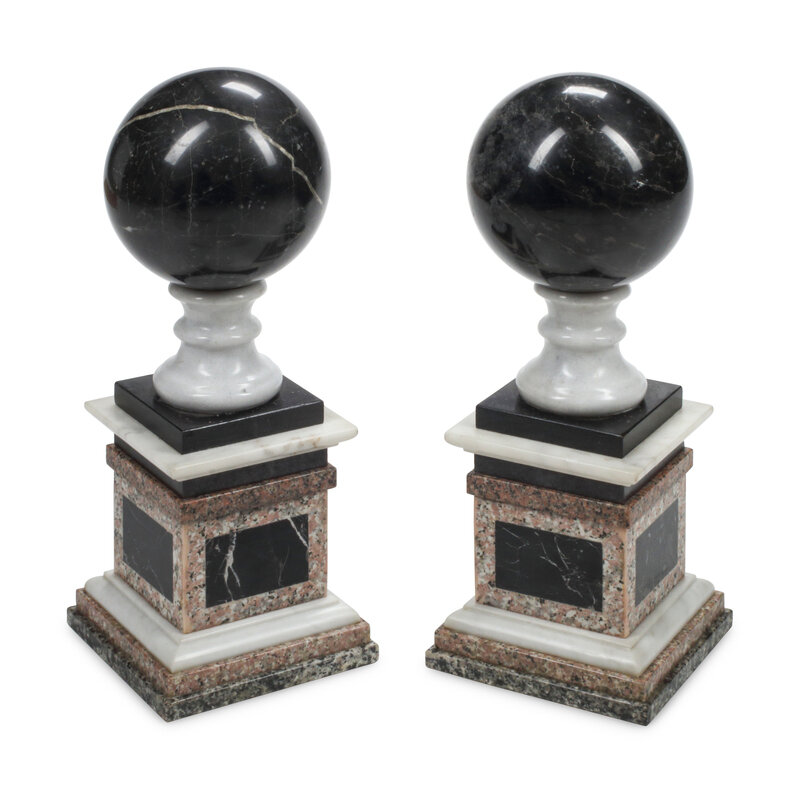 A Pair of Italian Grand Tour Style Vari-Color Marble Spherical Ornaments