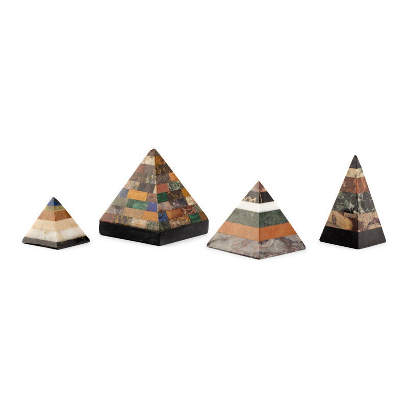 Four Specimen Hardstone Pyramid-Form Paperweights