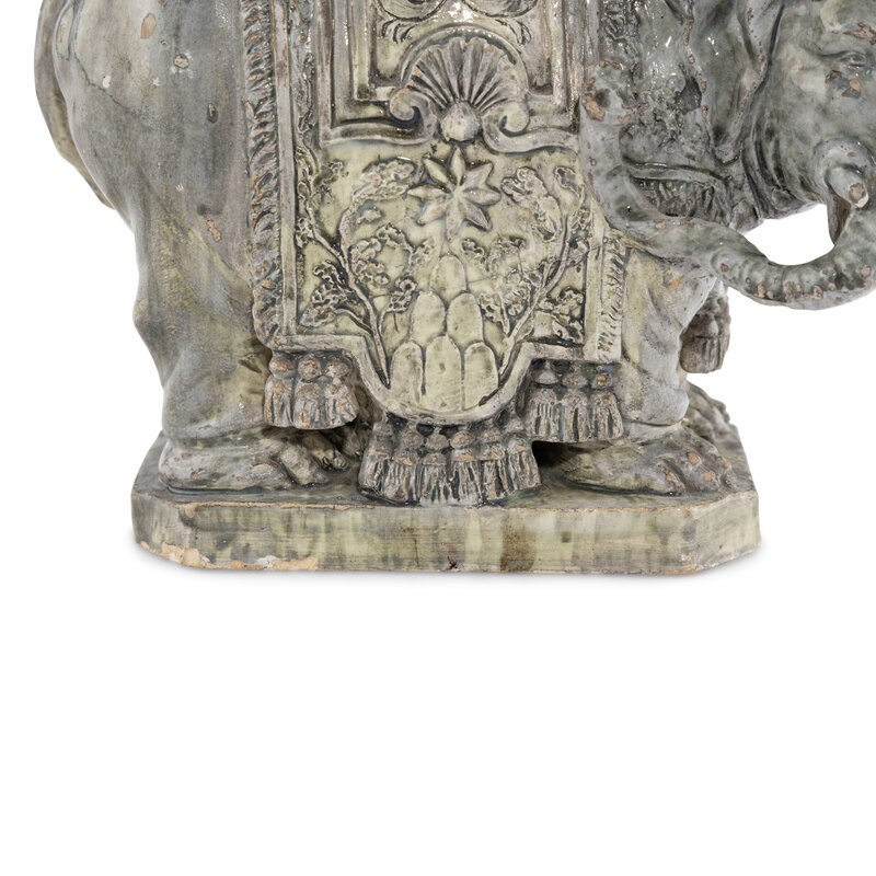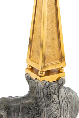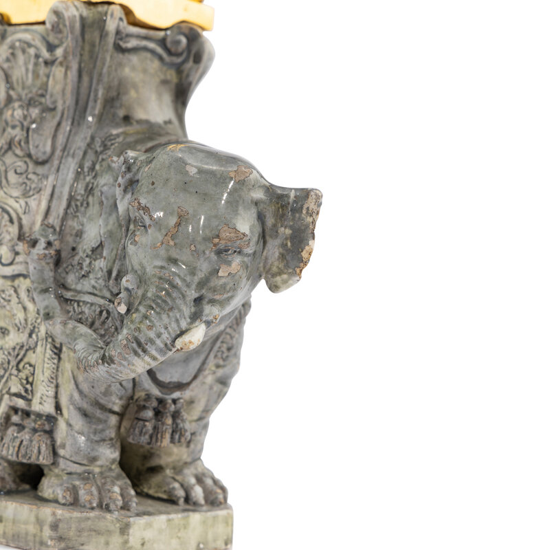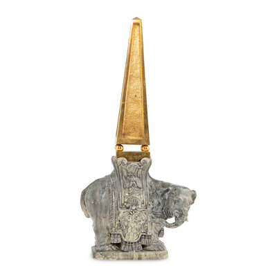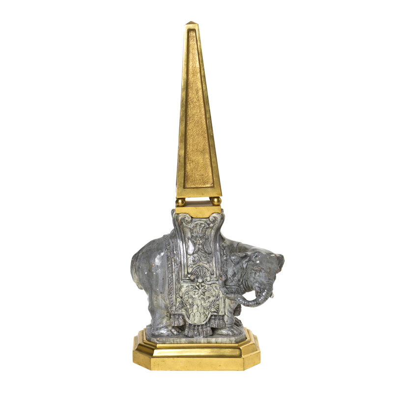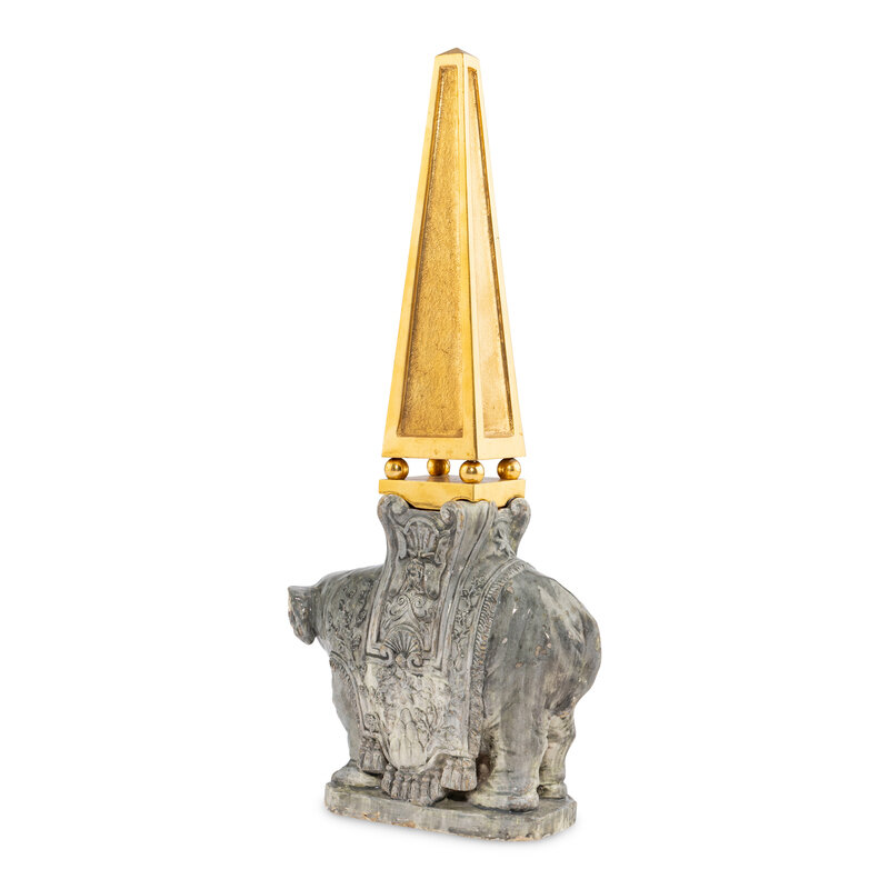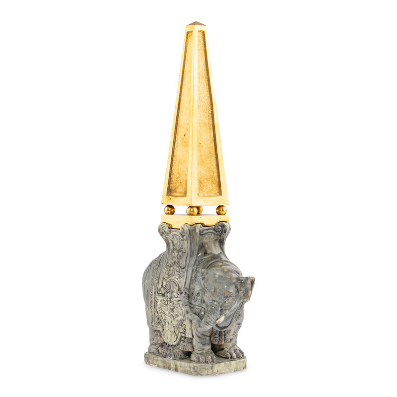 A Continental Gilt Bronze and Glazed Earthenware Elephant Obelisk