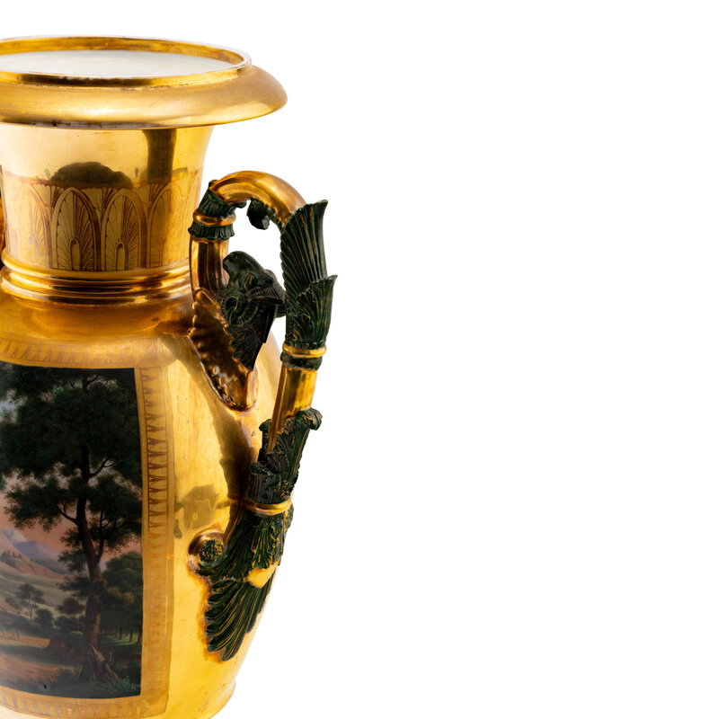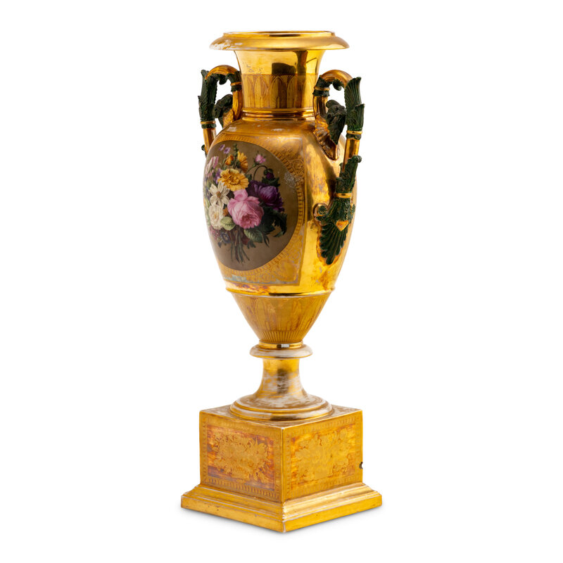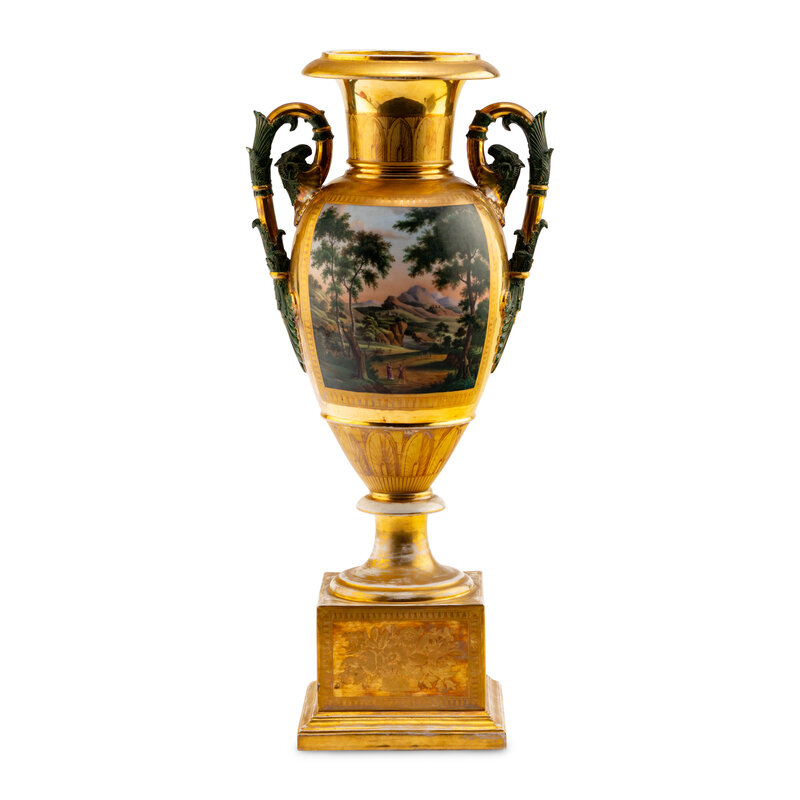 A Paris Porcelain Scenic and Floral-Painted Vase
