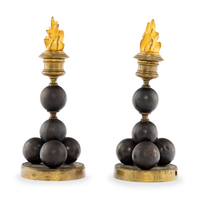 A Pair of French Gilt Bronze and Metal Candlesticks