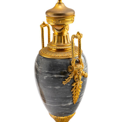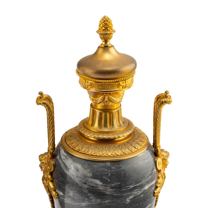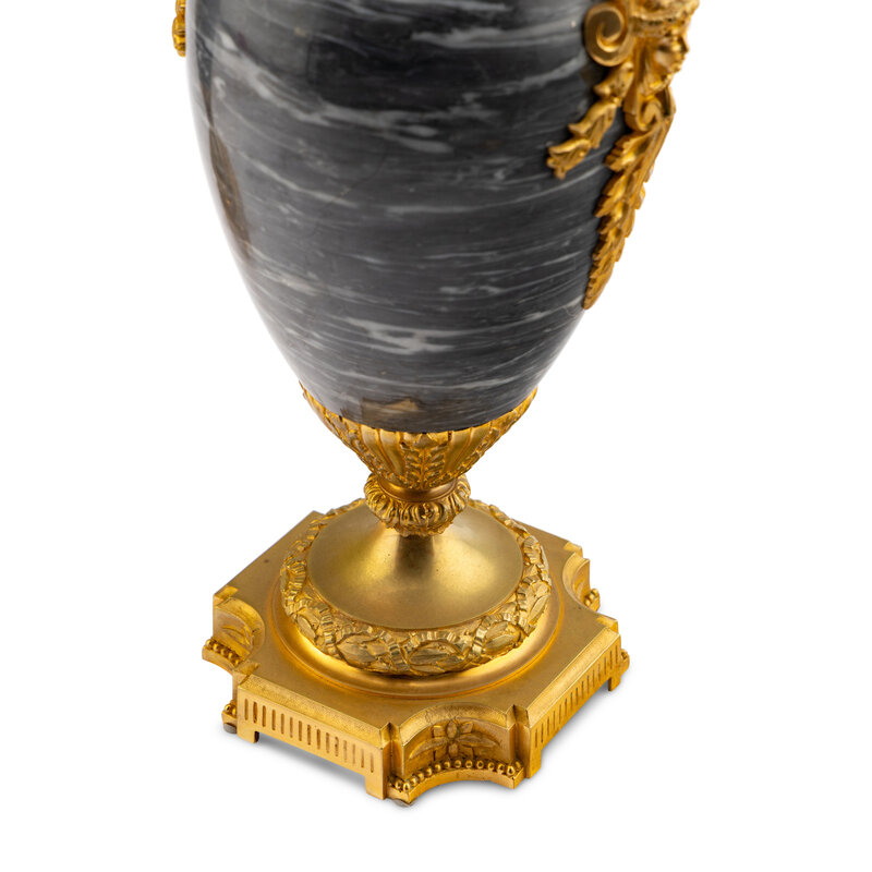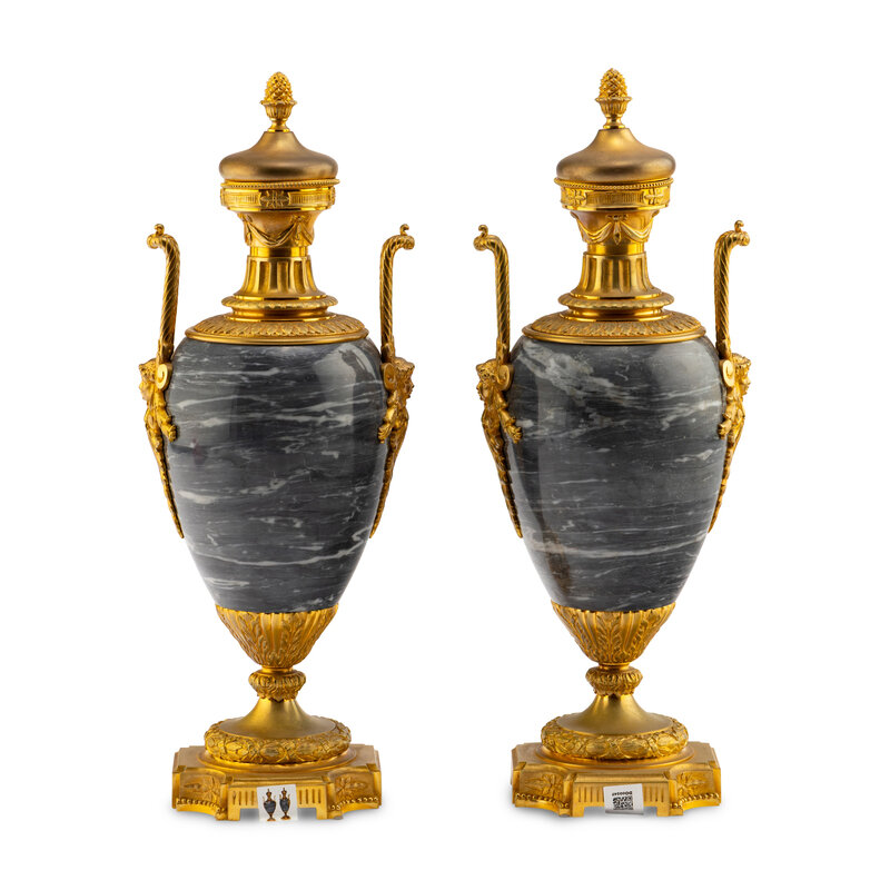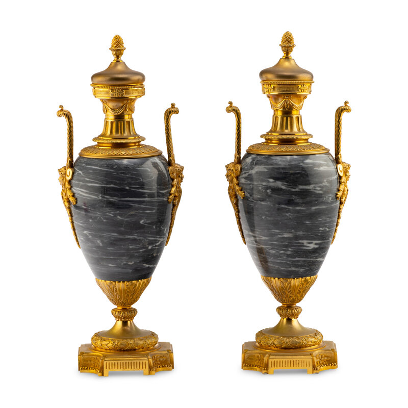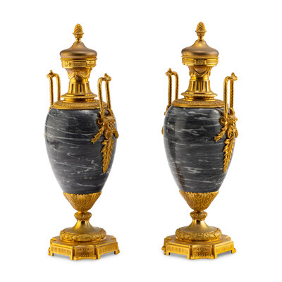 A Pair of Louis XVI Style Gilt Bronze Mounted Marble Urns