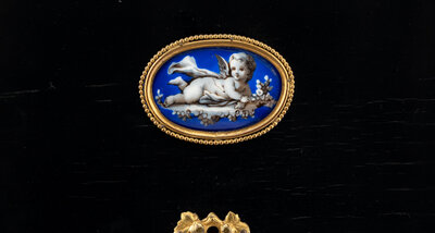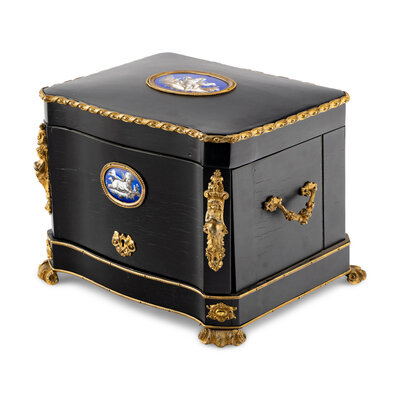 in an associated porcelain-inset ebonized case.