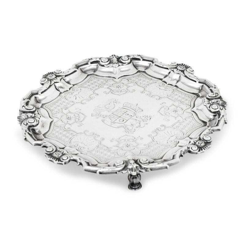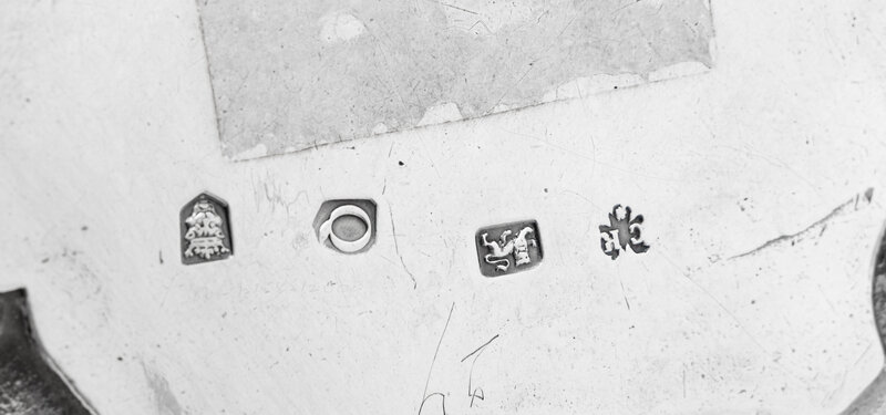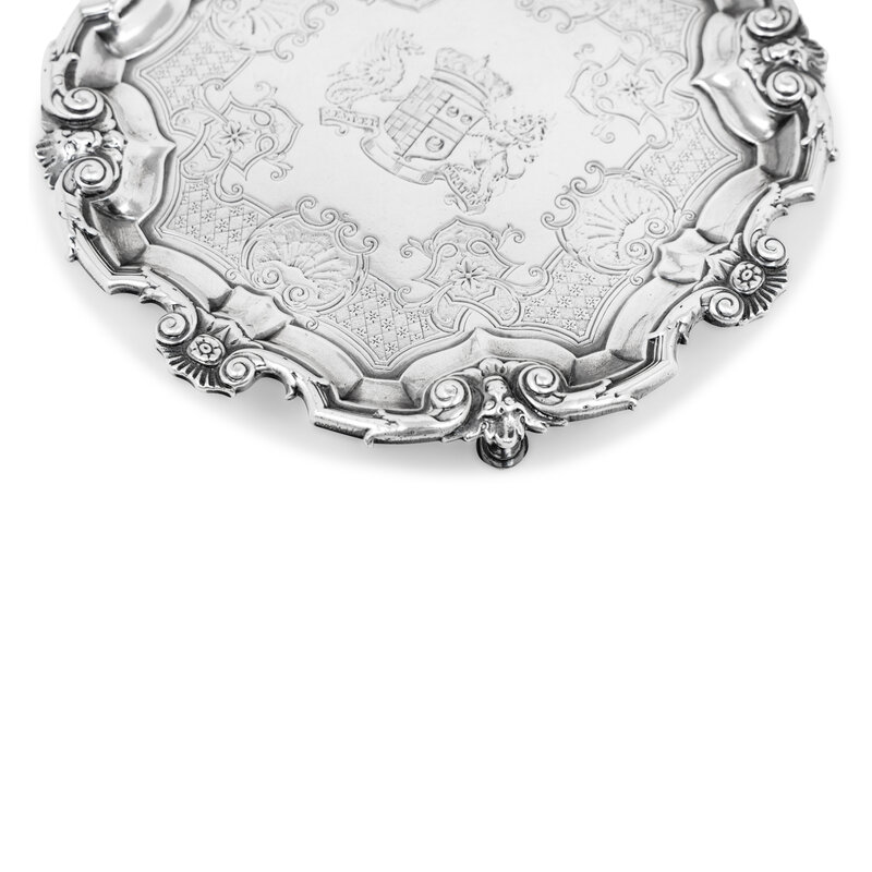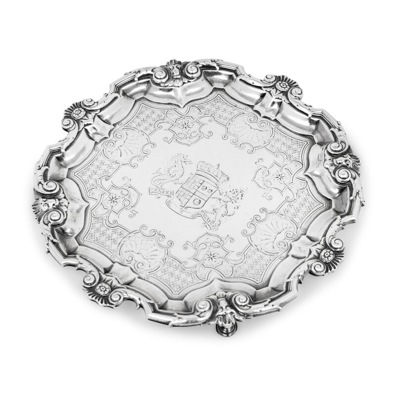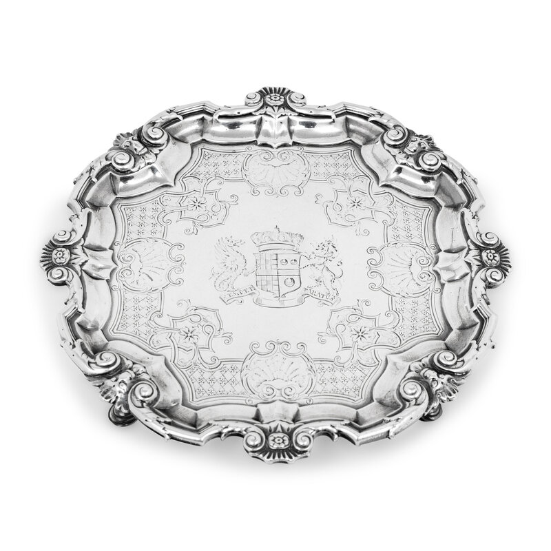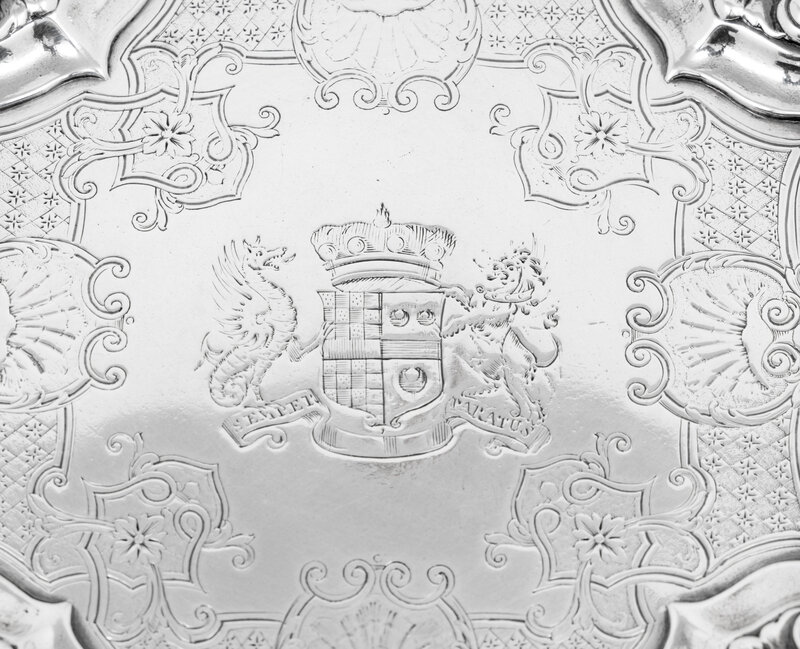 centered with an engraved baron's coat of arms, likely that of the Barons Clifford of Chudleigh.