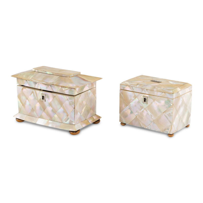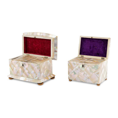 Two Regency Mother-of-Pearl Veneered Tea Caddies