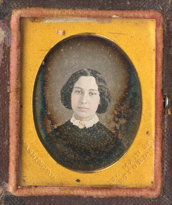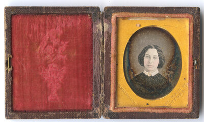Rare oversized ninth-plate daguerreotype of a young woman.