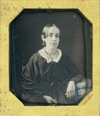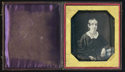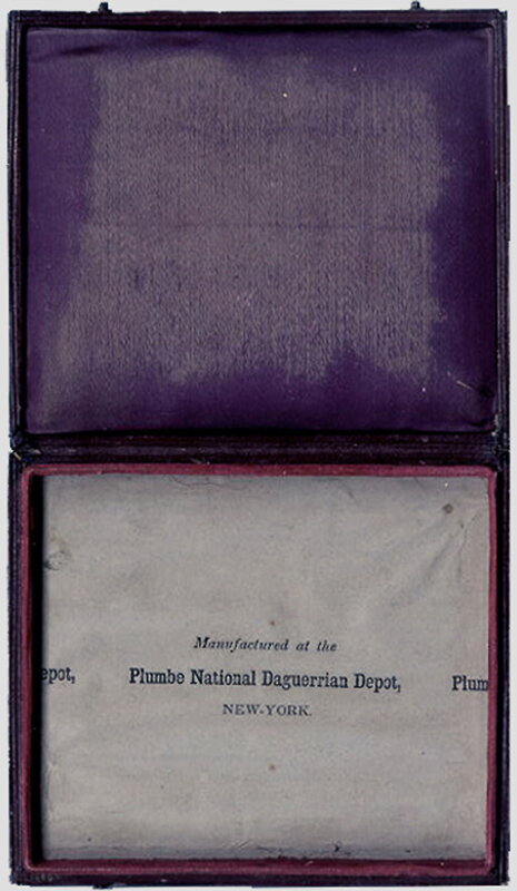 She looks directly into the camera with a "knowing smile". Perhaps intended for a lover, this circa mid-1840s image resides in a Plumbe National Daguerreian Depot, New York, "Lyre" case with an intact but weak hinge. The daguerreotype, likely made in NYC, is in excellent condition.