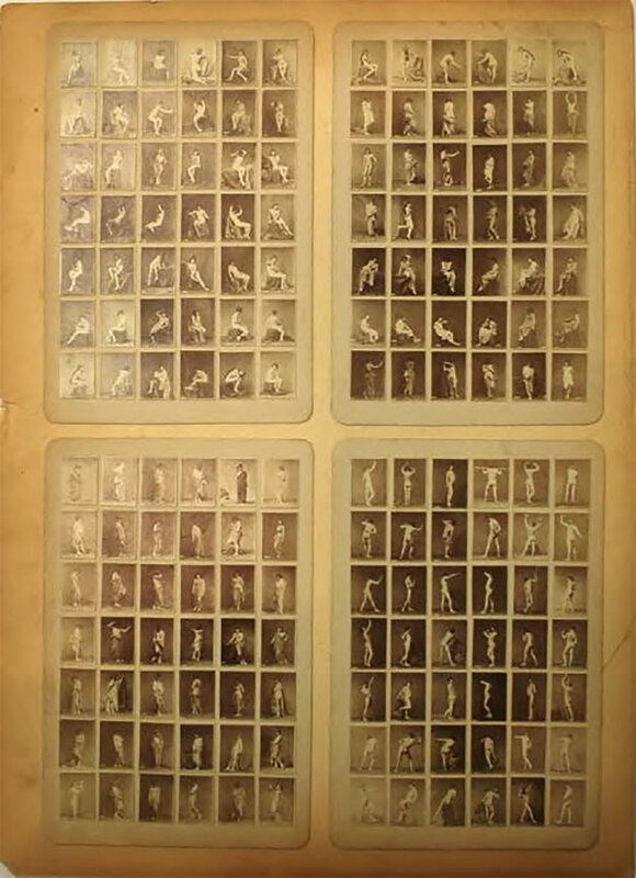 Anonymous, probably French. Four cabinet-style card-mounted photographs each depicting 42 images of nude models in various poses, the four cards each 6 x 4" mounted on a larger 10 x 14" sheet.