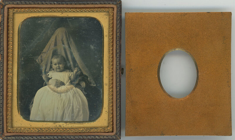 This image is in a full case. In the second image a mother is hidden under a cloth and the photographer has matted her out of the frame. It is in a half case.
