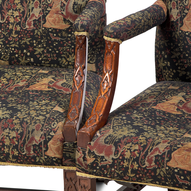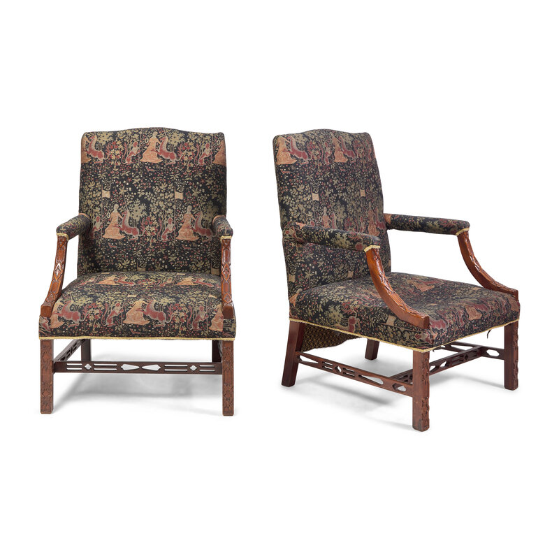 A Pair of George III Style Mahogany Carved Library Chairs
