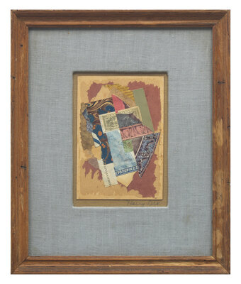 mixed media collage on cardboard