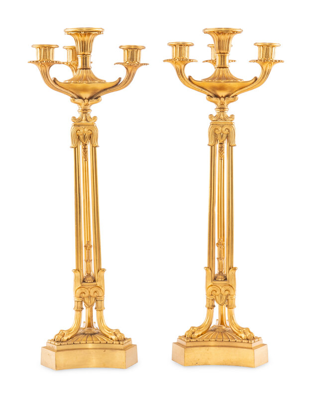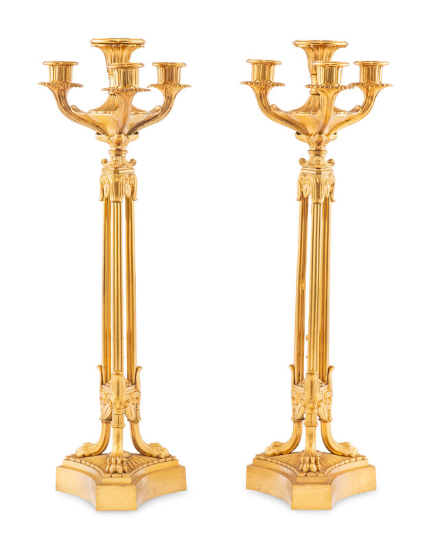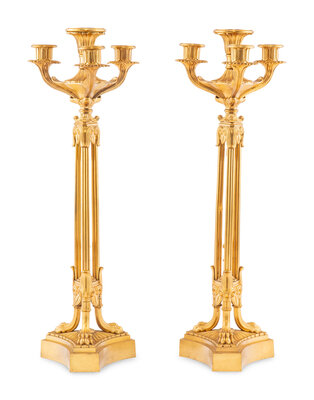 A Pair of Neoclassical Style Gilt-Bronze Four-Light Candelabra