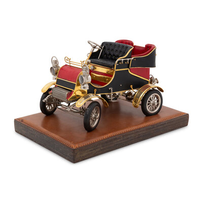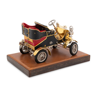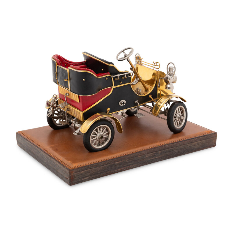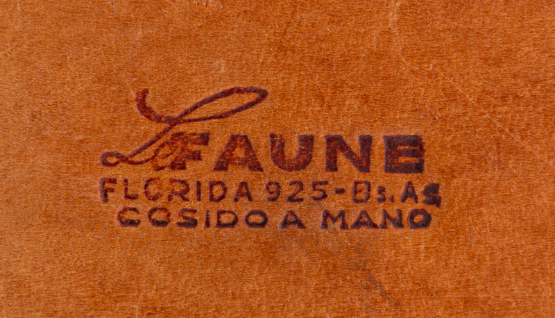 In an acrylic case with a leather pad by Le Faune; the tires signed Industria Argentina.