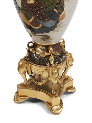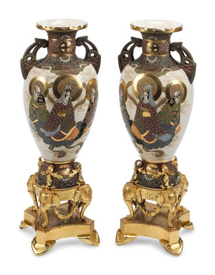 A Pair of Satsuma Porcelain and French Gilt Bronze Mounted Vases