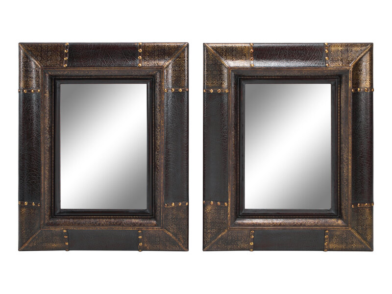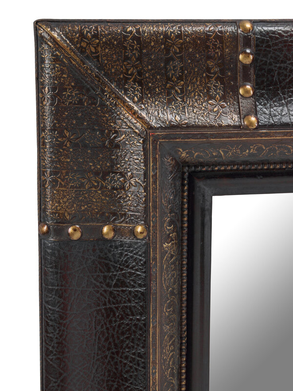 A Pair of Portuguese Style Embossed and Parcel-Gilt Leather Mirrors