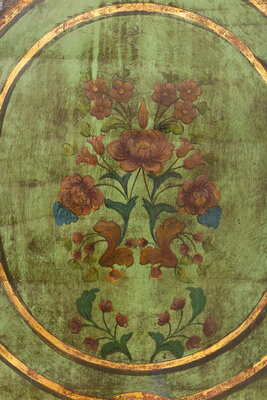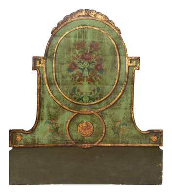 An Italian Polychrome Painted and Parcel-Gilt Headboard