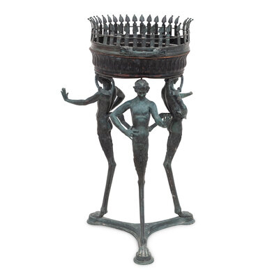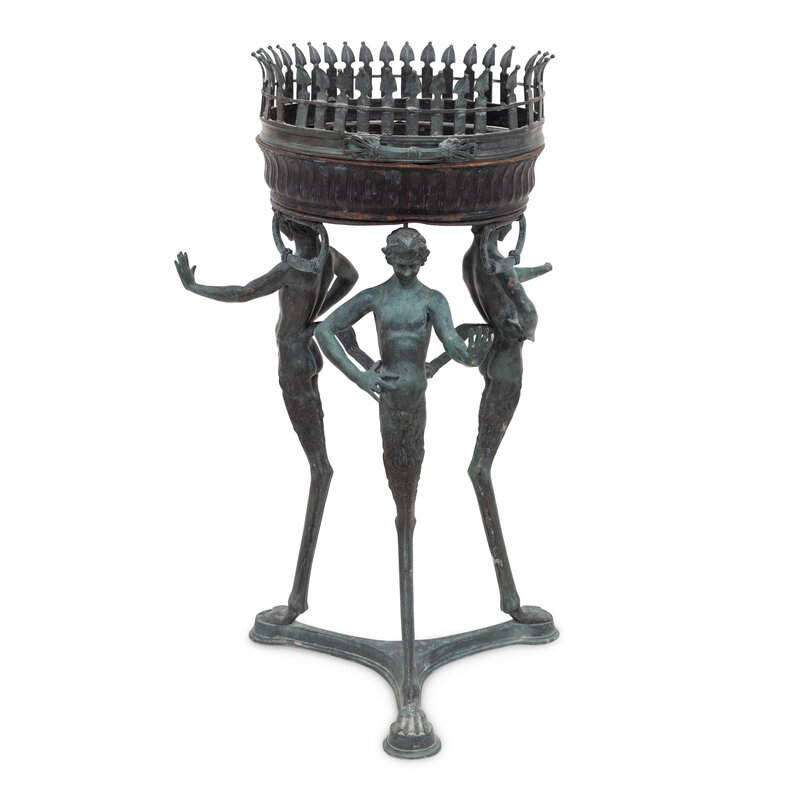 An Italian Bronze Tripod Jardiniere Stand with Satyrs