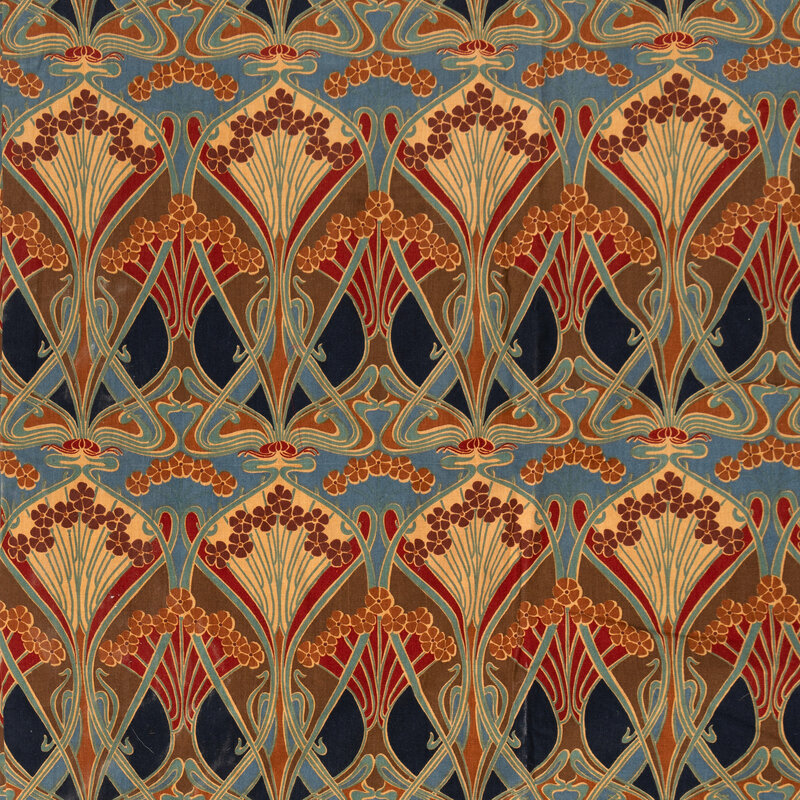 An Art Nouveau Block-Printed Cotton Panel