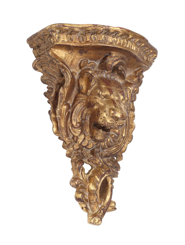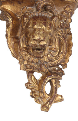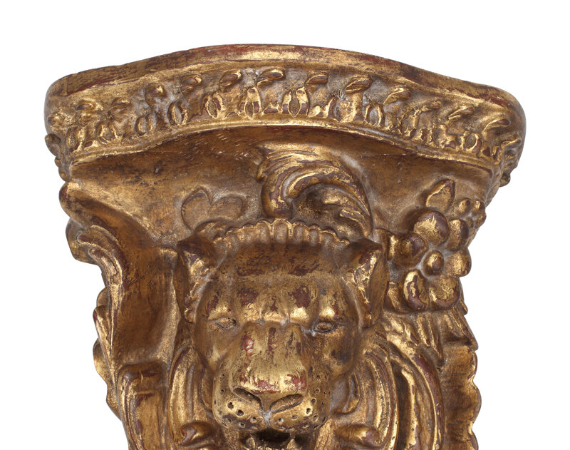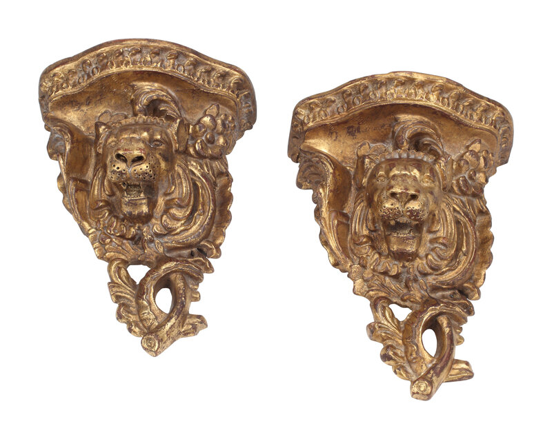 A Pair of Italian Giltwood Lion Motif Wall Brackets