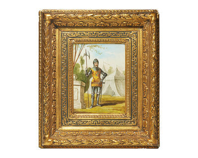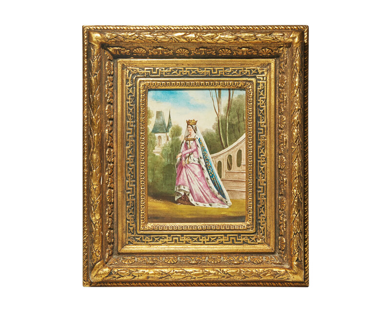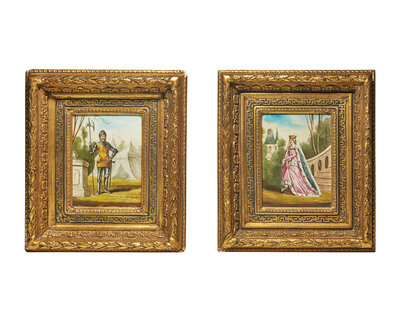A Pair of Hand-Painted Porcelain Plaques Depicting a Medieval Queen and Knight