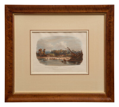 Coblenz: J. Holscher/London: Published by Ackermann & Co./Paris: Arthus Bertrand, (1839-42). Vig. XI. Hand-colored aquatint engraving by Salathe after Bodmer; "C. Bodmer" blindstamp below title. Scattered spotting. Approximately 10 x 13 in. (254 x 330 mm) (sight). In mat and unexamined out of frame, 22 1/2 x 25 1/8 in. (571 x 638 mm). Graff 4648; Howes M-443a; Pilling 2521; Sabin 47014; Wagner-Camp 76:1