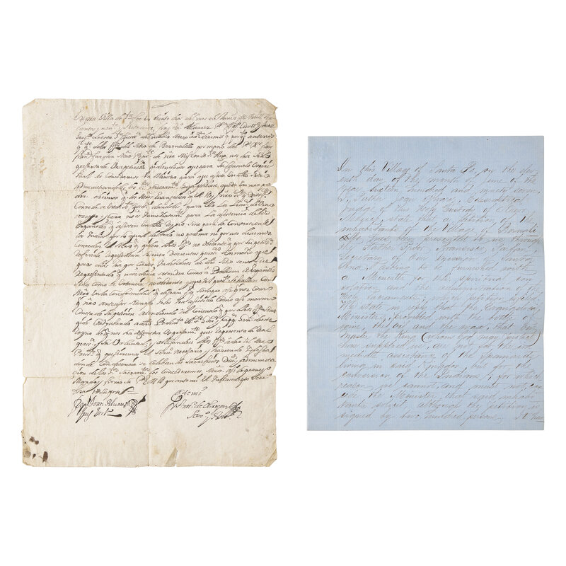 A unique survival. Documents from the Spanish Mission period in the American Southwest are rare to auction.