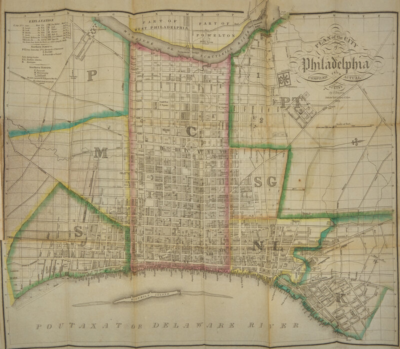 A fascinating glimpse of Philadelphia in the 1820s, published by the son of Mathew Carey, Henry C. Carey, and Carey's son-in-law, Isaac Lea. Illustrated with a fine and large folding map of the city, and accompanied by a compendium of information on the city, including a brief history, information on its government, statistics on population, health, climate, commerce, and industries, as well as details on its various religious, charitable, scientific, commercial, and cultural institutions.
