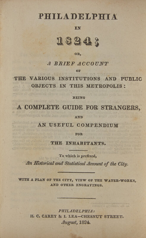 [Philadelphia] Philadelphia in 1824; or, a Brief Account of the Various Institutions and Public Objects in This Metropolis: Being a Complete Guide for Strangers, and an Useful Compendium for the Inhabitants...