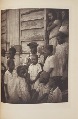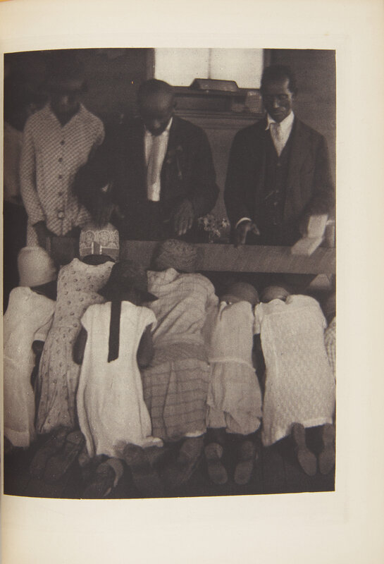 New York: Robert O. Ballou, (1933). First edition, deluxe issue, #286/350 numbered copies signed by Julia Peterkin and Doris Ulmann. 4to. 341, (1) pp. Illustrated with photogravure frontispiece, 89 photogravure plates, and one additional photogravure plate signed by Ulmann laid in, as issued; all but three bound photogravures with tissue guards. Publisher's three-quarter white cloth over brown paper-covered beveled-edge boards, stamped in blind and in gilt, small pencil scrawl in lower front board fore-edge, spine ends browned; top edge gilt, other edges untrimmed; very light offsetting to title-page; foxing to pp. 317/318; loose plate toned and worn along edges, but not affecting image or signature. Blockson 3932; Roth, The Book of 101 Books: Seminal Photographic Books of the Twentieth Century, pp. 78-79