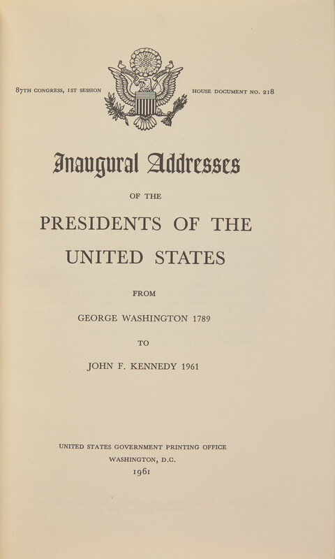 [Presidential] [Kennedy, John F.] Inaugural Addresses of the Presidents of the United States From George Washington 1789 to John F. Kennedy 1961