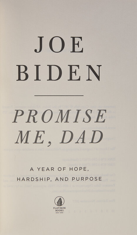 New York: Flatiron Books, (2017). First edition. Signed by Biden on front blank. 8vo. Original cream-colored cloth; in publisher's dust jacket. As new.