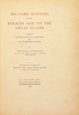[Presidential] Roosevelt, Theodore. Big Game Hunting in the Rockies and on the Great Plains