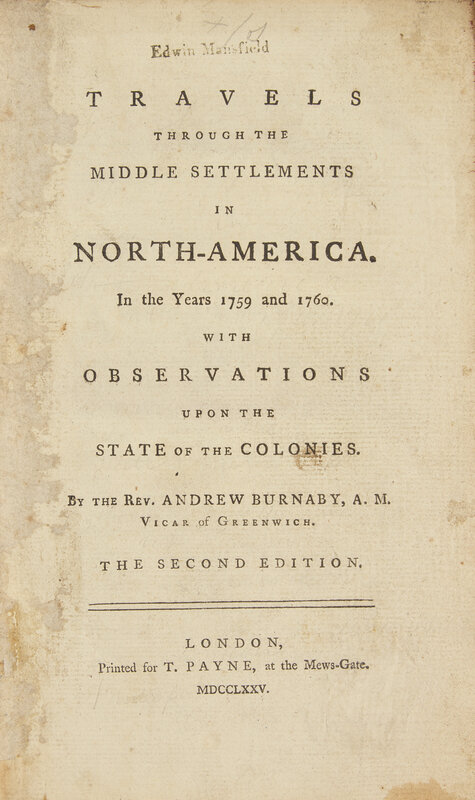 Second edition of the Rev. Andrew Burnaby's account of the American colonies on the eve of the American Revolution.