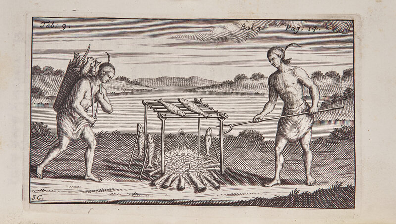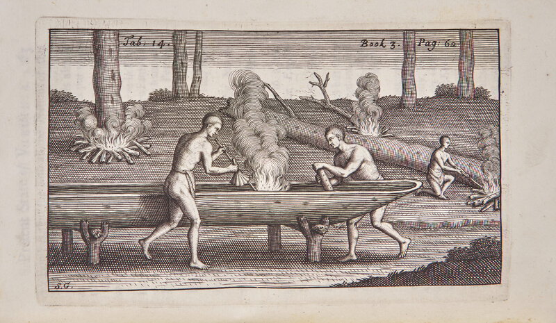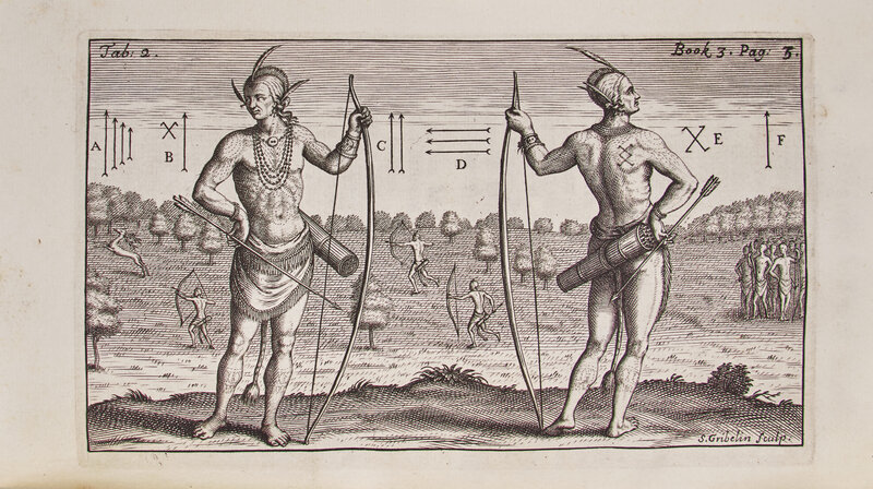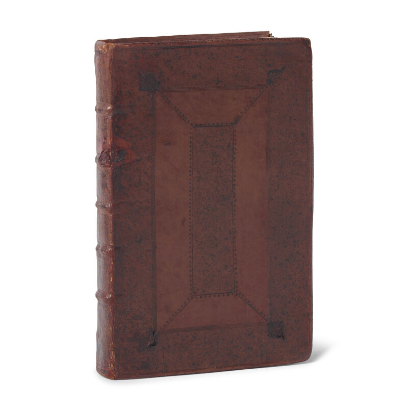 London: Printed for R. Parker, 1705. Four parts in one volume. First edition. 8vo. (xii), 16, (iv), 104; 40; 64; 83 pp. Illustrated with an engraved vignette title-page, 14 engraved plates, by Gribelin, as well as one folding chart. Full contemporary speckled paneled calf, stamped in blind, small nick in upper front joint; red speckled edges; likely washed; in clamshell box. Arents 456; Church 821; European Americana, 705/21; Field 122 (later edition); Howes B-410; Pilling, Algonquian p. 43; Sabin 5112; Streeter Sale 2:1098; Vail 297