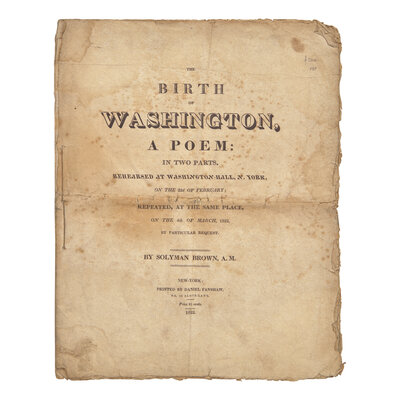 Rare first edition of this poem written in celebration of President George Washington's 90th birthday, penned by American dentist Solyman Brown (1790-1876).