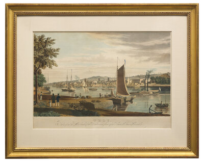 New York: Published by Henry J. Megarey, 1838. Hand-colored aquatint engraving by Bennett. First state. Trimmed to plate mark; scattered light wear and repairs along edges. 18 1/4 x 25 3/4 in. (463 x 654 mm). In mat and in frame, 28 1/2 x 35 3/8 in. (724 x 898 mm). Deak 479