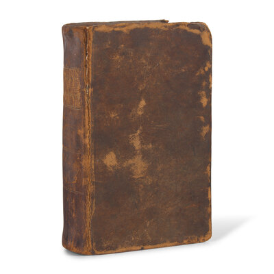 Lewistown, Pennsylvania: Printed and Published by John W. Shugert, 1836. First edition. 12mo. 400 pp. Full contemporary brown sheep, morocco spine label, stamped in gilt, boards and extremities scuffed and worn, cracks in upper front and rear joints; all edges trimmed; old pencil notations and ownership signatures on endpapers and blanks; dampstaining throughout; sheets toned and foxed; scattered wear along sheet edges; small loss in bottom corner pp. 89/90, affecting a few letters; closed tear in fore-edge pp. 133/134. Howes B-65; Library Company of Philadelphia, Afro-Americana 813; Not in Blockson