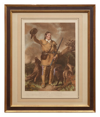 A striking engraving of the legendary American frontiersman, printed from the original 1839 copperplate.