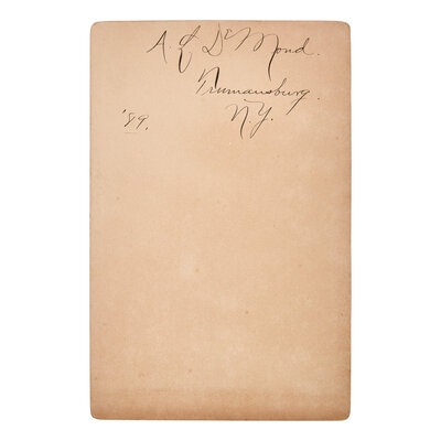 Cortland, New York: Lelover & Schutt, (1889). Albumen cabinet card portrait on original mount, inscribed by DeMond on verso: "A.L. DeMond / Trumansburg. / N.Y. / '89." 5 3/8 x 3 7/8 in. (136 x 98 mm) print on 6 1/2 x 4 1/4 in. (165 x 108 mm) mount.