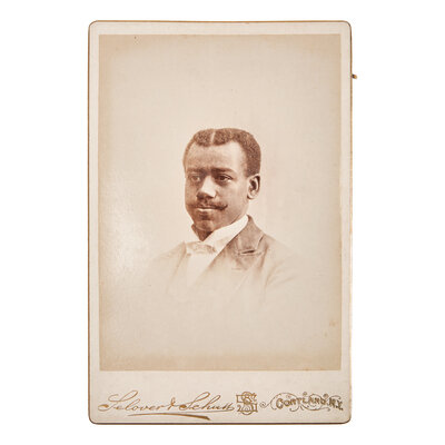 A fine and scarce inscribed cabinet card of African American minister and activist Abraham Lincoln DeMond (1867-1936). Born in Covert, Seneca County, New York, DeMond was the first African American to graduate from the Cortland Normal School (now SUNY Cortland), and then went on to study theology at Howard University. He served as principal of the Lincoln School for Colored Children in Fort Payne, Alabama, where he was esteemed as a politically active pastor that championed and fought for the rights of Blacks. He then became pastor at the historic Dexter Avenue Baptist Church in Montgomery, Alabama, the same church where nearly 50 years later Martin Luther King, Jr., would help lead the Civil Rights Movement. On January 1, 1900 DeMond delivered a speech, The Negro Element in American Life, in which he reviewed African American history as a roadmap for the nation’s future, and championed the contributions made by Blacks and antislavery figures. DeMond stressed that the Declaration of Independence and the Emancipation Proclamation--those "two great patriotic, wise and humane state papers"--are the two documents of supreme importance in the nation's attainment of freedom and equality, with the latter "essential to the fulfilling of the other." "Grand as was the Declaration of Independence," DeMond writes, "lofty as were its sentiments and sweeping as were its statements, it was unsatisfactory, its very wording a battle ground of controversy, until the Emancipation Proclamation put the Temple of Freedom on the foundation that the fathers had laid." DeMond later served as pastor of the Plymouth Congregational Church in Charleston, South Carolina; the First Congregational Church in Buxton, Iowa; and the First Congregational Church of New Orleans.