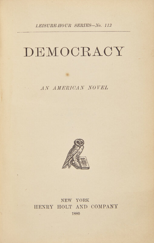 A handsome copy of this increasingly rare first edition, earliest issue, of this novel satirizing the political class in Washington, D.C. following the Civil War. Published anonymously in 1880, it was not until after Henry Adams's death in 1918 that his publisher disclosed the author's identity. It has since become a classic interrogation on American power politics and the nature of democracy.
