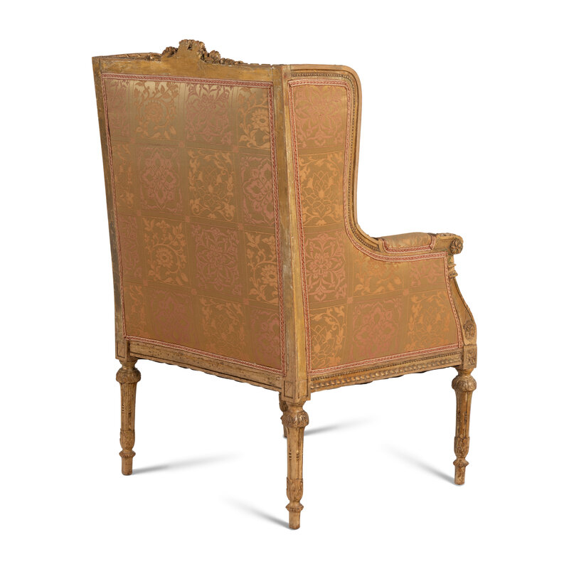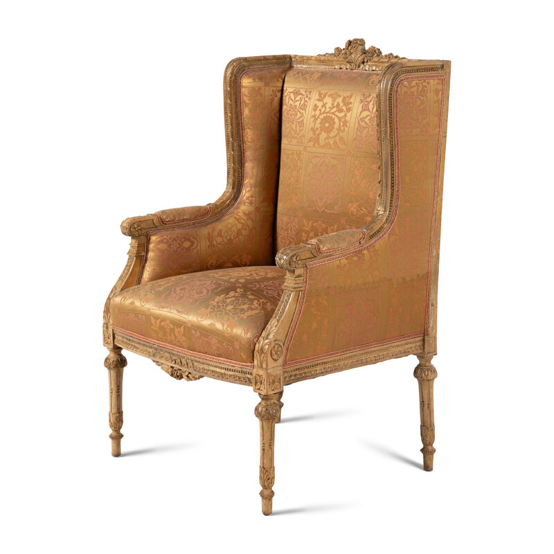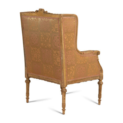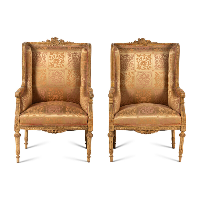 A Pair of Louis XVI Carved Giltwood Bergères