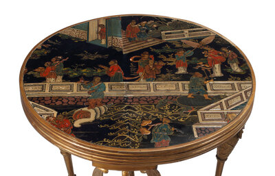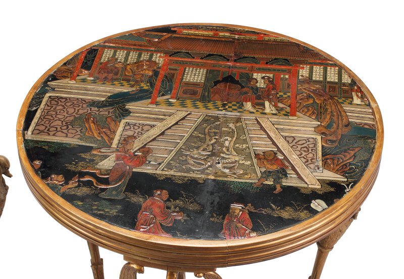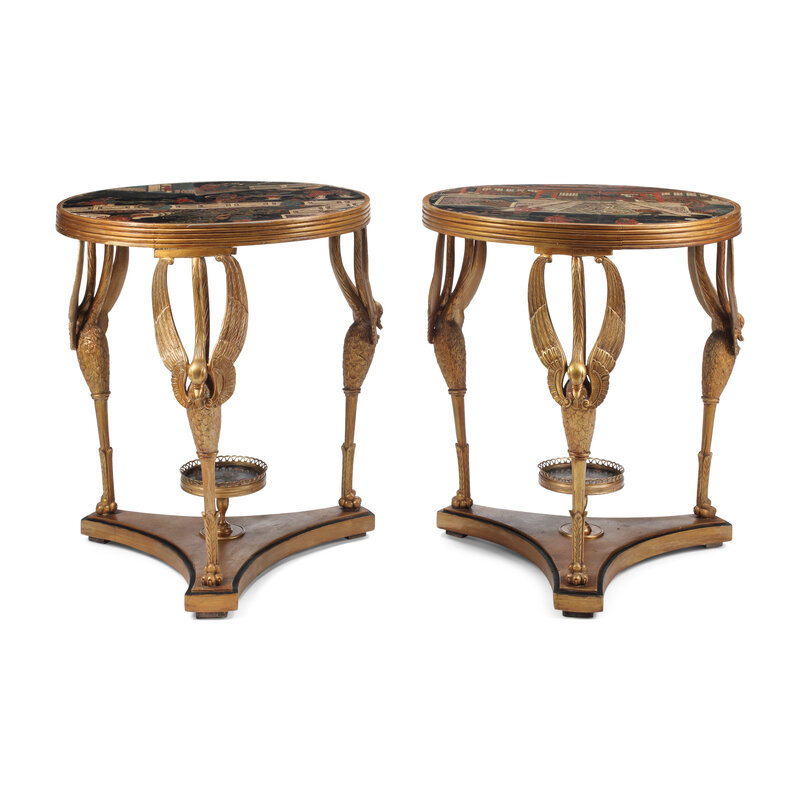 A Pair of Directoire Style Giltwood and Chinese Lacquer Tables