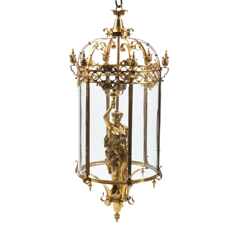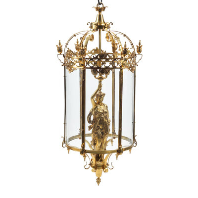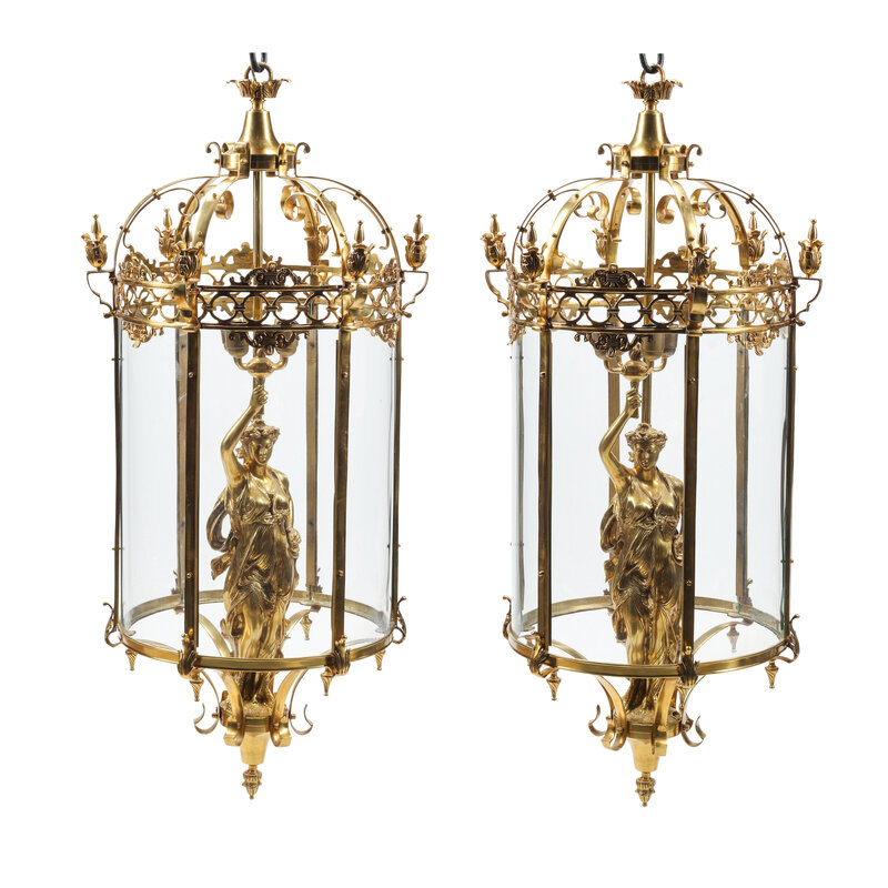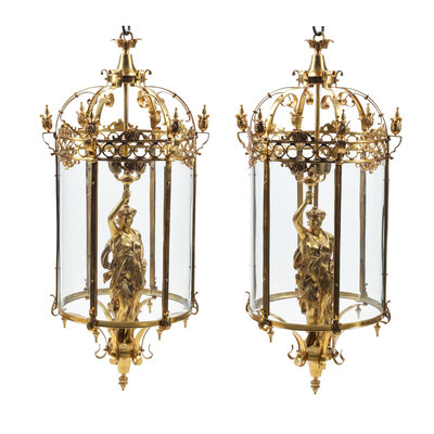 A Pair of Neoclassical Style Gilt Bronze Figural Lanterns